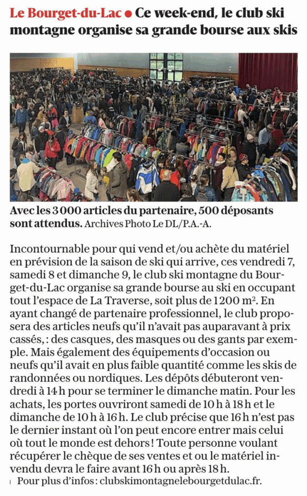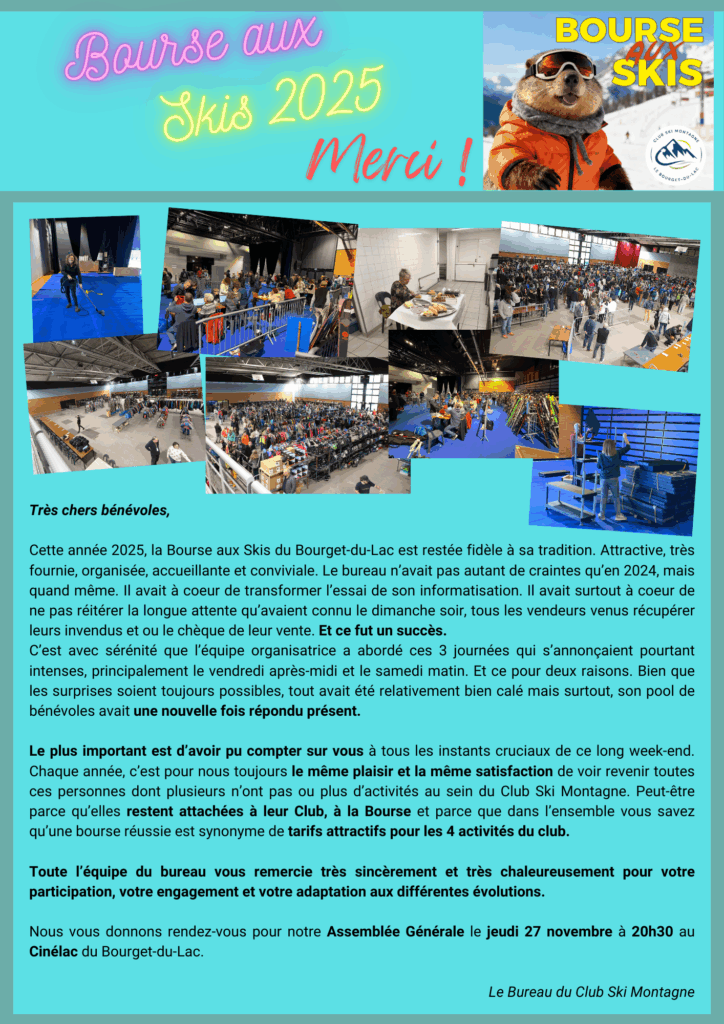 La saison 2025/2026 du Club Ski Montagne débute par notre traditionnelle Bourse aux Skis qui se déroulera les :